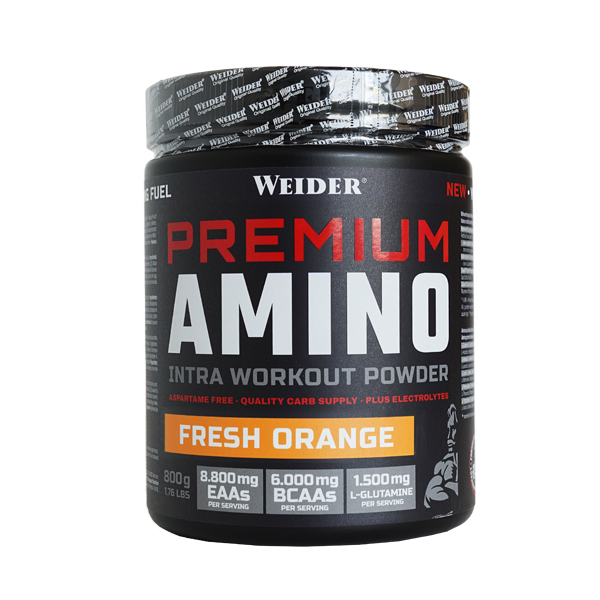 Το νέο Premium Amino Intra Workout Powder έχει σχεδιαστεί ειδικά για κατανάλωση κατά τη διάρκεια έντονων προπονήσεων. Τα συστατικά έχουν επιλεγεί προσεκτικά για να τροφοδοτήσουν το σώμα σας με απαραίτητα θρεπτικά συστατικά όταν τα χρειάζεστε περισσότερο. Κάθε μερίδα του Premium Amino της WEIDER® περιέχει 8.800 mg βασικά αμινοξέα (ΕΑΑ), 6.000 mg BCAAs, 1.500 mg L-Γλουταμίνη, 24 g υδατάνθρακες υψηλής ποιότητας και βασικούς ηλεκτρολύτες.