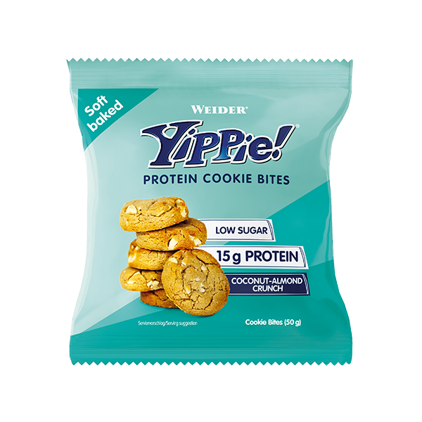 Cookies Bites με πρωτεΐνη ορού γάλακτος και κομμάτια καρύδας και αμύγδαλου. Το Protein Cookie Bites είναι το νέο νόστιμο σνακ από την WEIDER®. Είτε ως σνακ με υψηλή περιεκτικότητα σε πρωτεΐνες μετά την προπόνησή σας, είτε κατά τη διάρκεια της βραδινής ταινίας στον καναπέ σας στο σπίτι!